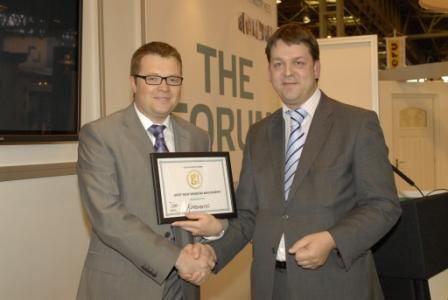 At the close of the Glassex show Kombimatec Machines received the award for 'Best New Window Machinery Product' at Glassex GP&T 2008 and was presented by Mr. James Gower- Group Exhibitions Director, Emap Construct and received on behalf of Kombimatec by David Parsons, Technical Director.